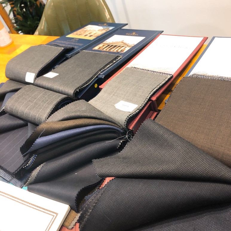 상담실에서 어떠한 재질이 있는지 쭉 보고 나서 샘플로 되어있는 정장을 입어보게 됩니다