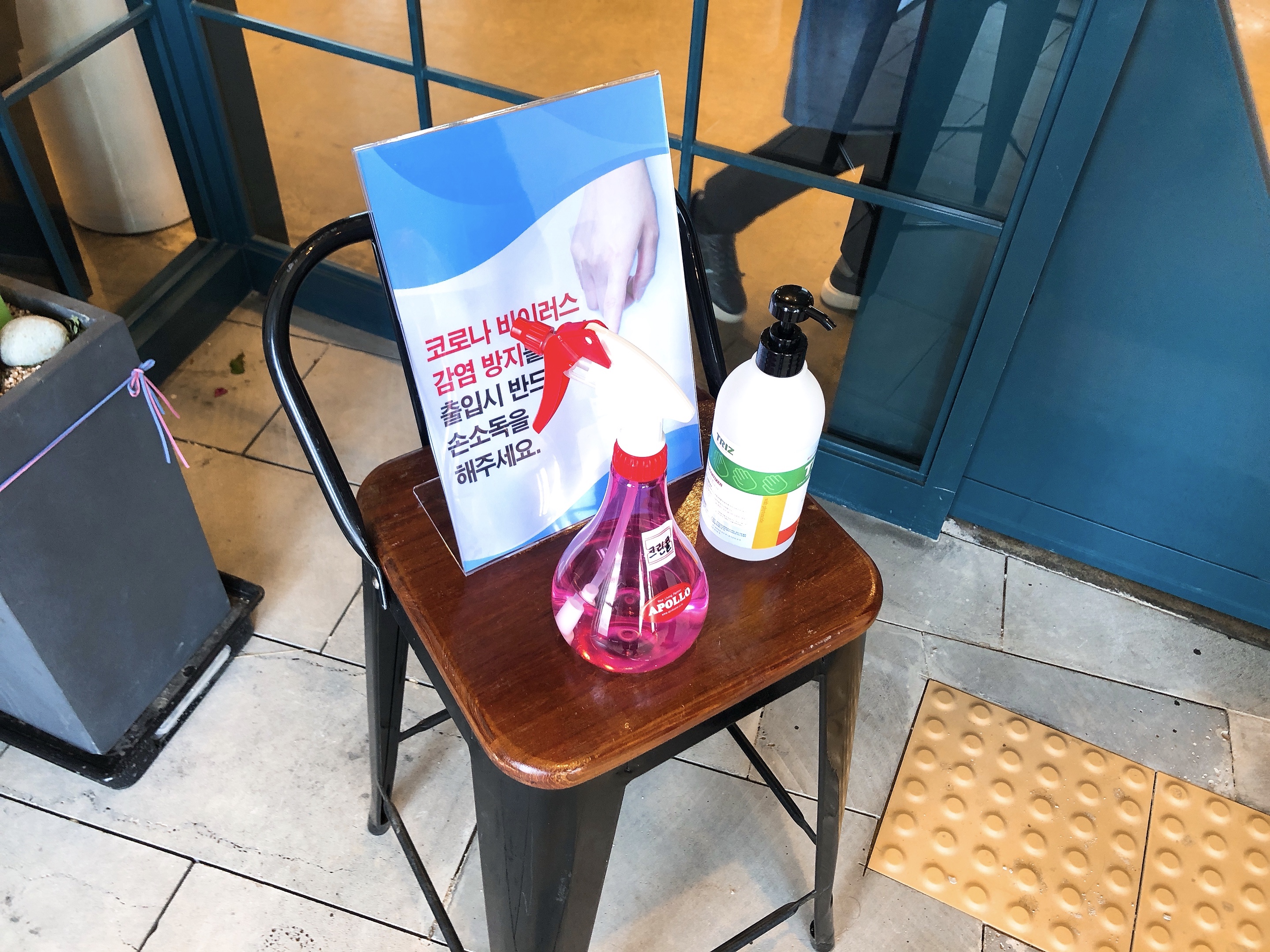 입구를 들어서면 코로나 예방을 위한 손 소독제가 있어요~ 꼼꼼히 소독하고 매장으로 들어갔습니다