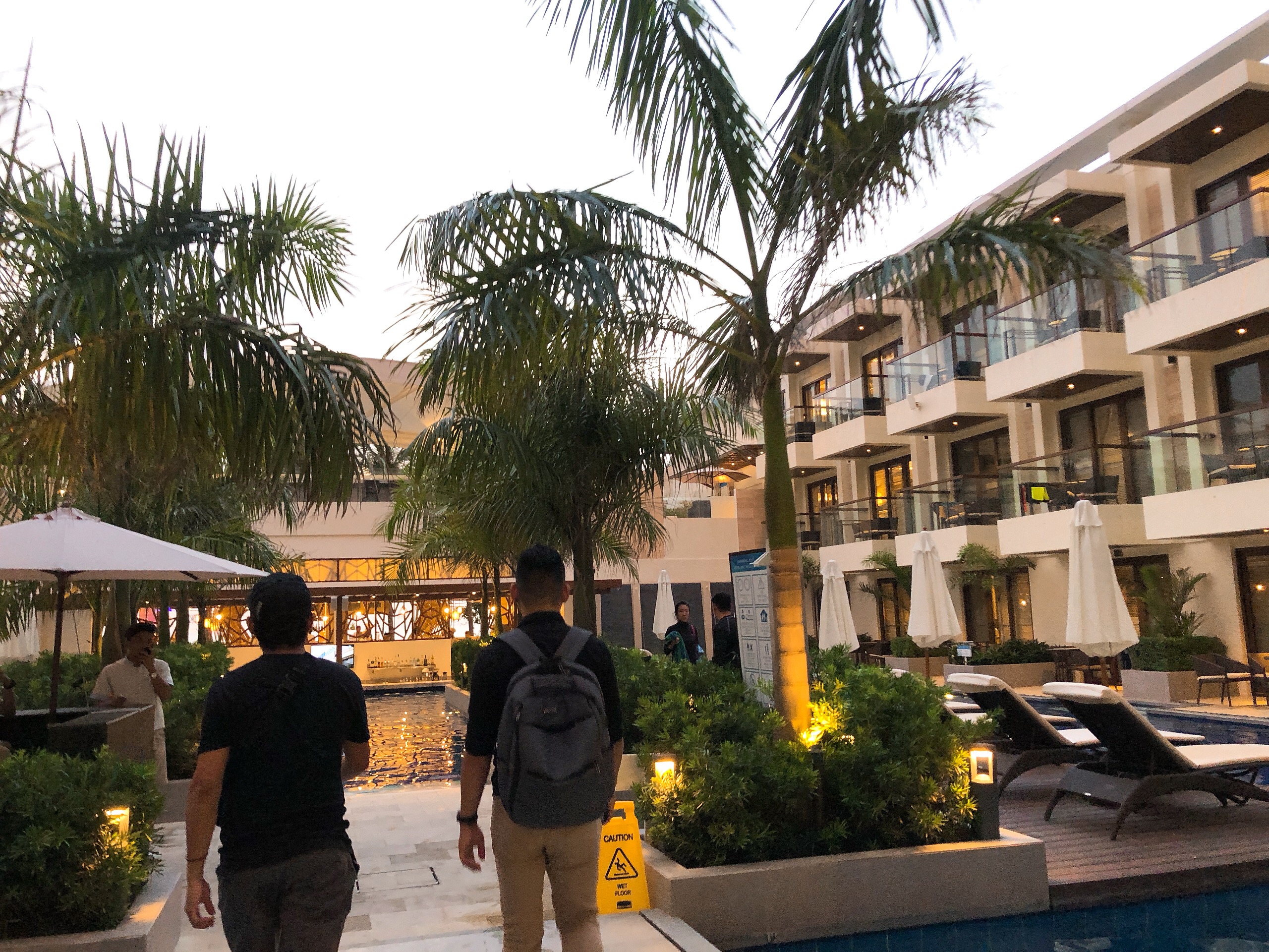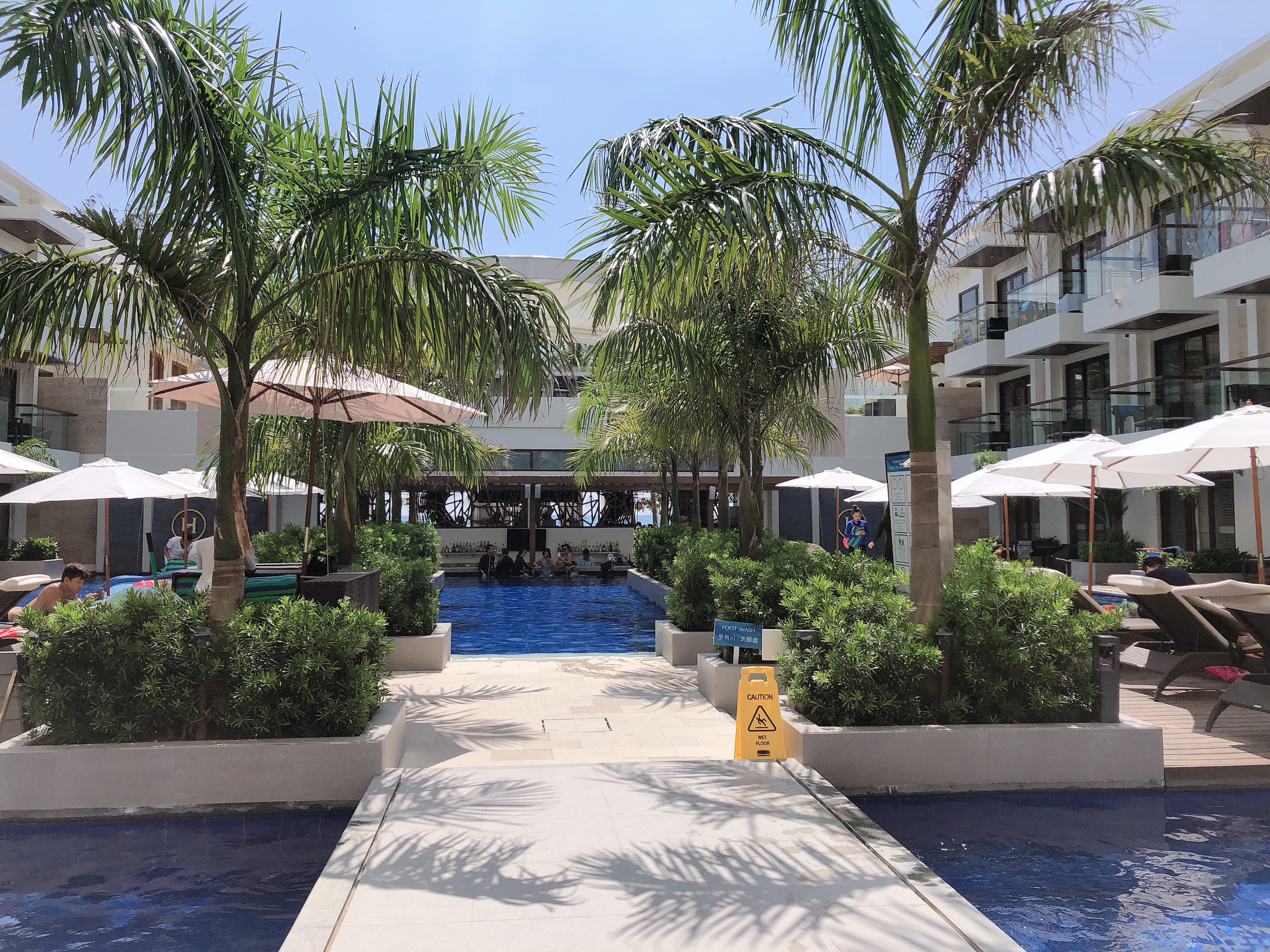 호텔을 들어가면, 로비에서 바로 보이는 수영장이에요~ 야자수와 함께 어우러지는 수영장... 너무 이뻤어요