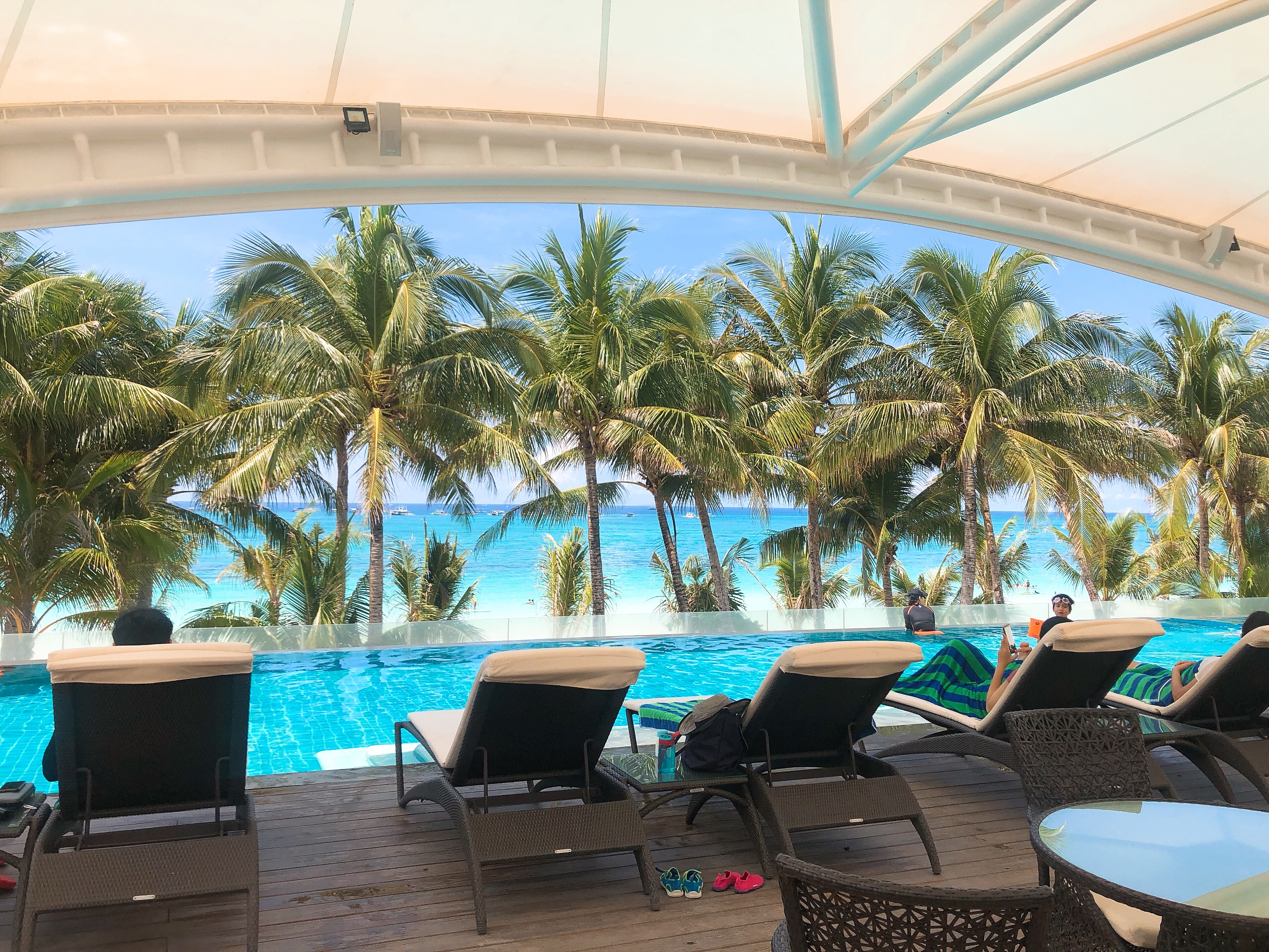 레스토랑은 크고, 뷰가 좋음 / 인피니티풀 / 화이트 비치 바로 앞 / 가장 최근에 지어진 곳)