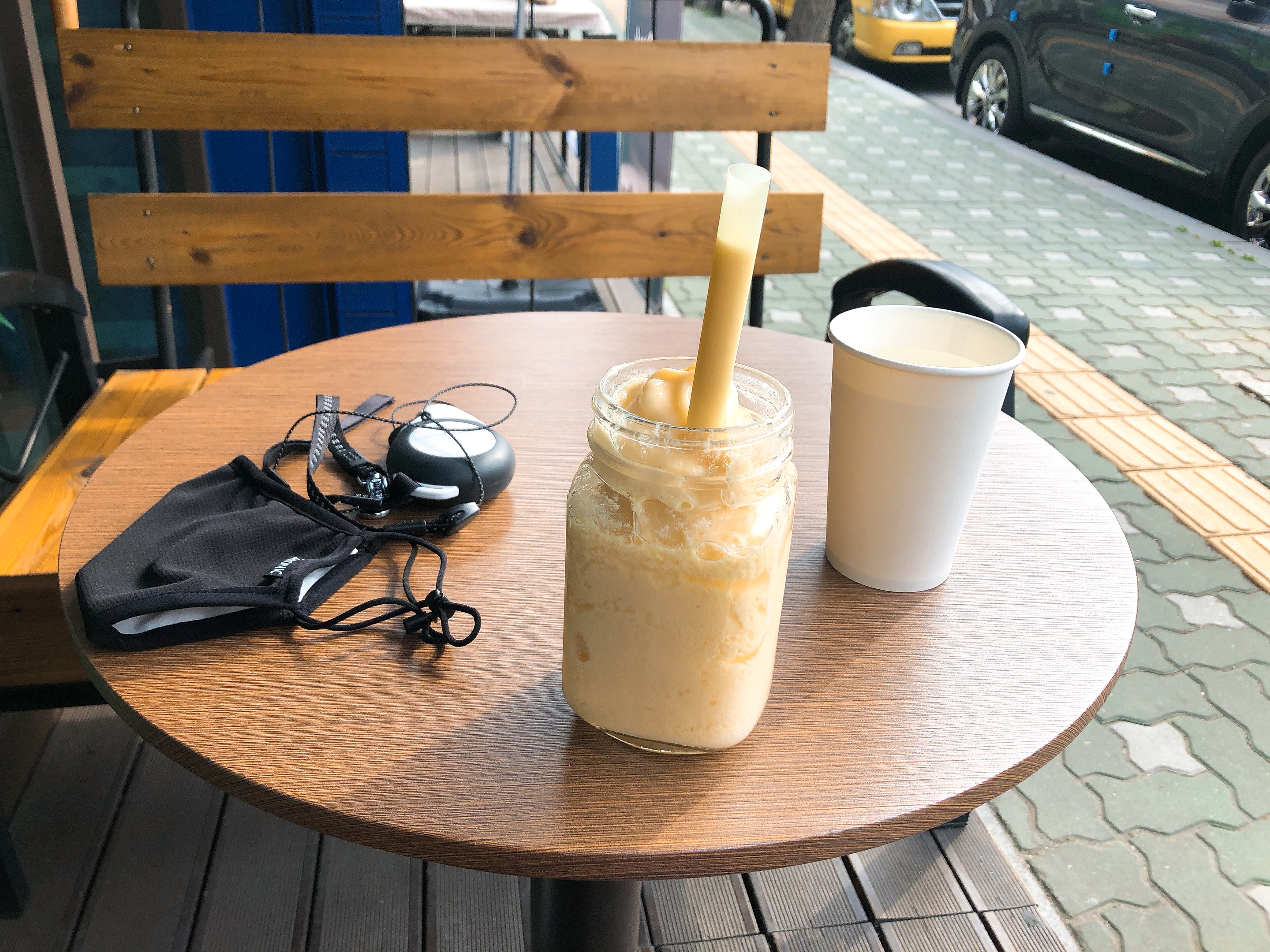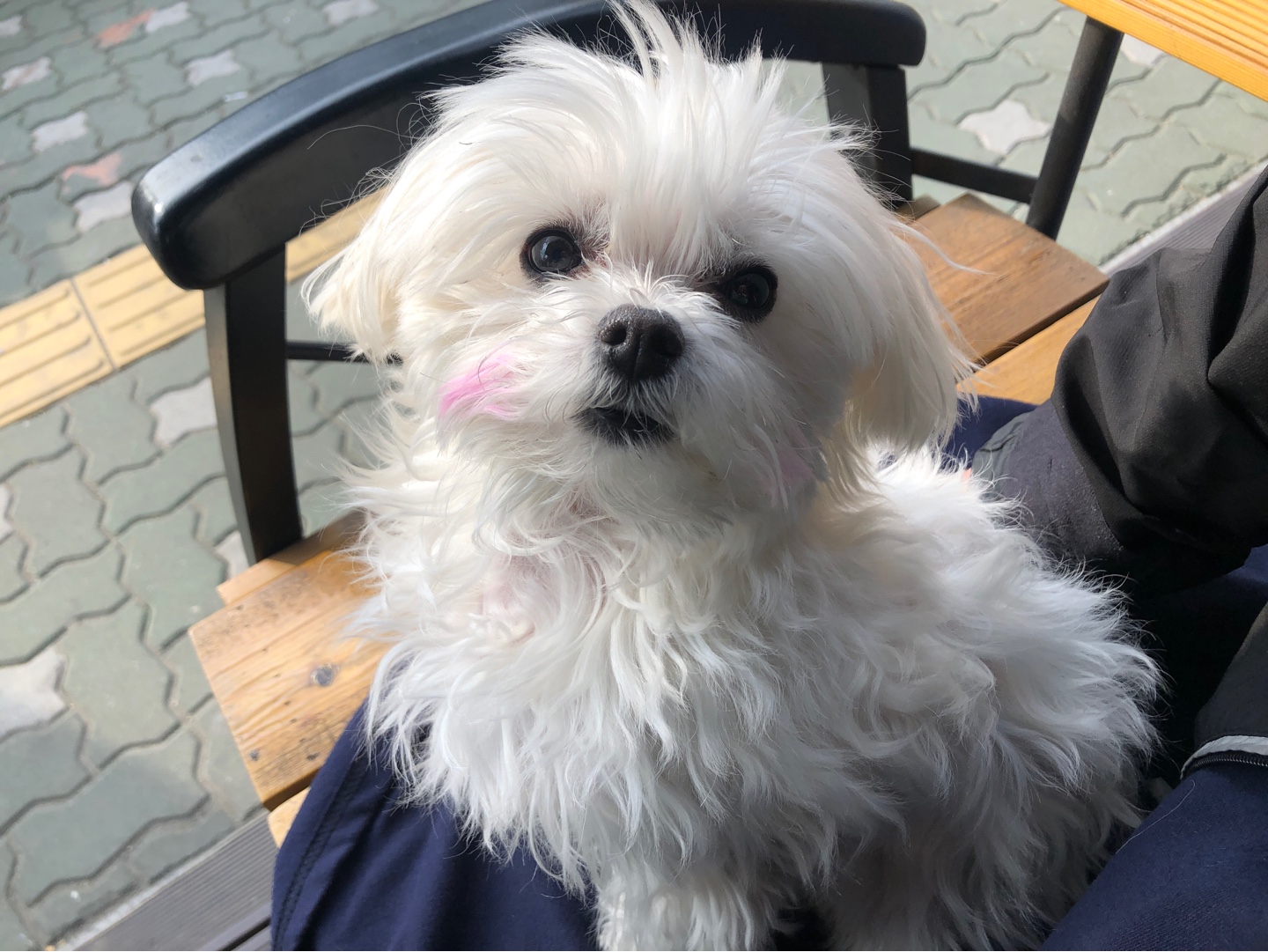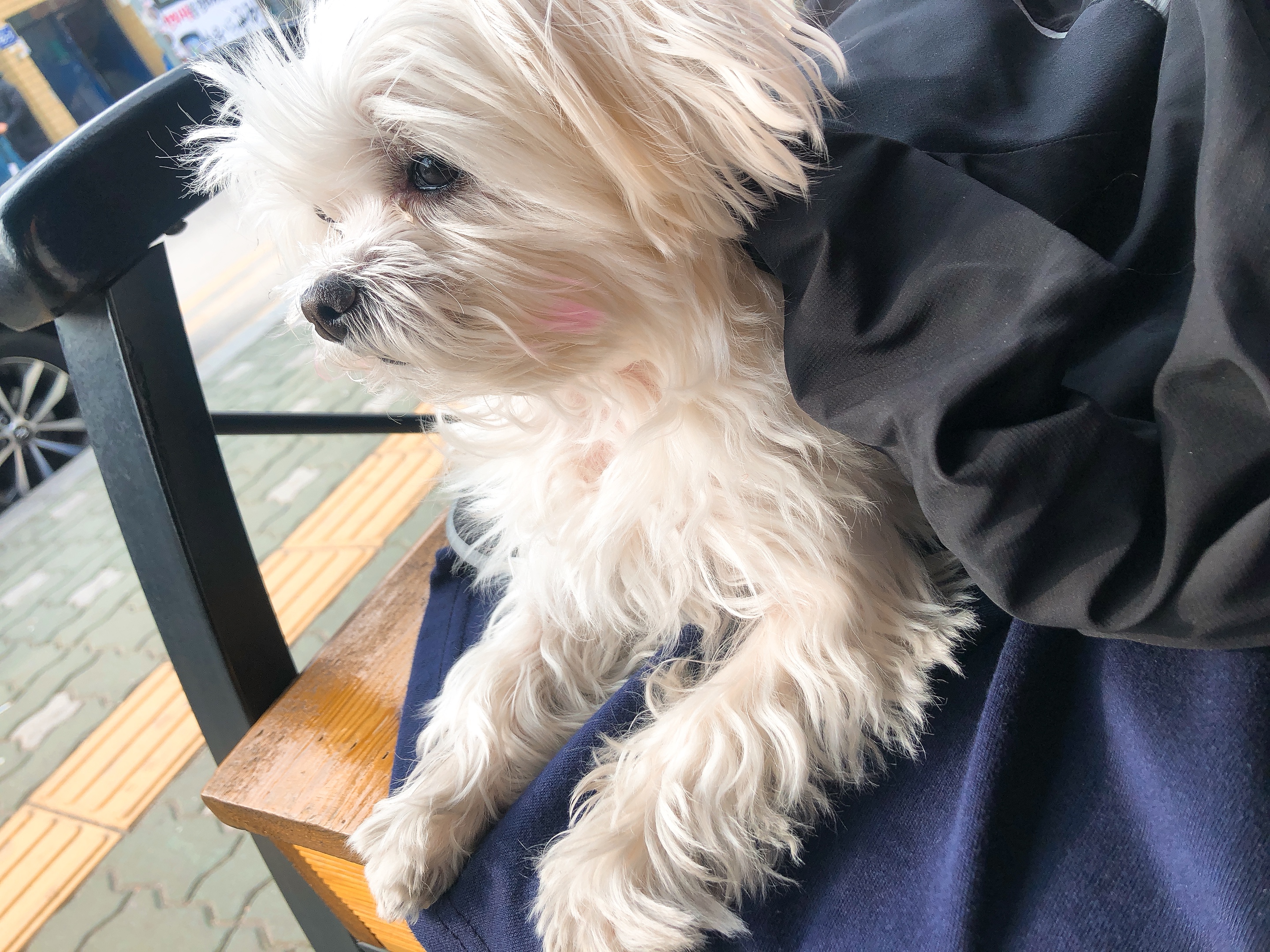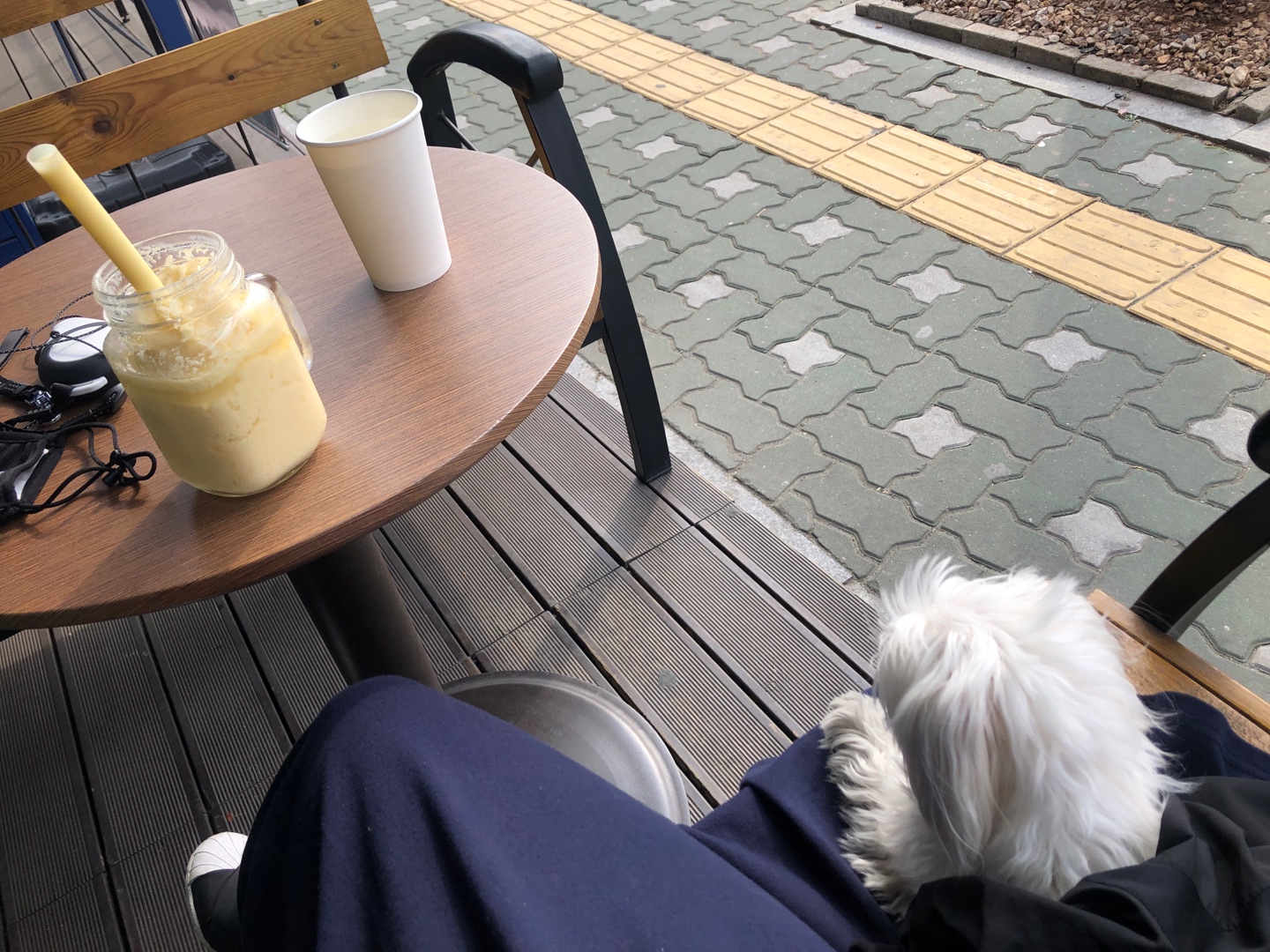 진짜 한 30분은 계속 걸었던 것 같네요! 하네스 적응을 빨리 했나봐요~ 그리고 편안해서 그런지 산책을 좋아하는 것 처럼 보였어요 우리 별이ㅜㅜ 진작에 이런 편안한 하네스 사줄걸.. 주인은 웁니다ㅜㅜ 휴식하러 카페에 왔어요~ 별이도 휴식하는중 ㅎㅎ
